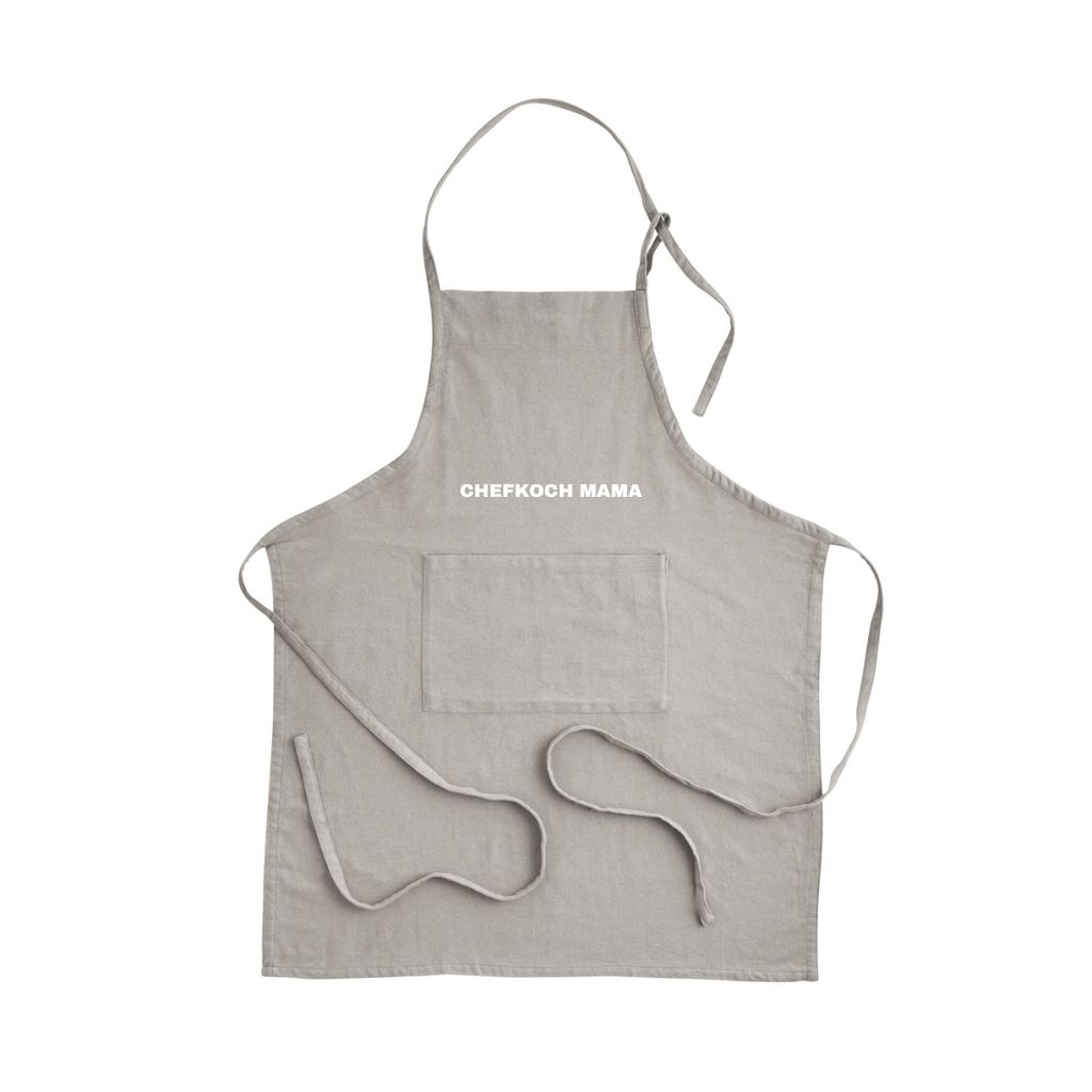 Diese hochwertige, personalisierbare Schürze in Grau wird aus recycelten Textilien auf traditionellen Handwebstühlen gefertigt und überzeugt durch ihre natürliche Optik und hochwertige Verarbeitung.