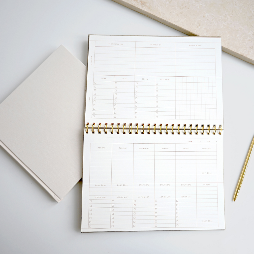 Schlichter Tischkalender mit hochwertigen Leinenbezug. Perfekt geeignet für diejenigen, die gerne Ihre Wochen im Voraus planen. Verschenke jetzt mit MERSOR!