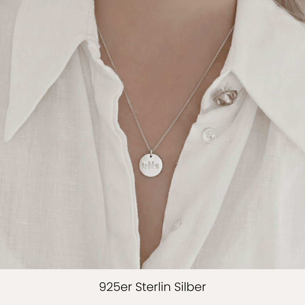 Ein zarter Anhänger aus 925er Sterling Silber, den du mit Deiner Handschrift oder einer persönlichen Zeichnung gravieren lassen kannst. Verschenke ein Schmuckstück, das so individuell ist wie die Person, die es trägt. Ein zeitloses, persönliches Geschenk für Freundin, Mutter oder dich selbst.